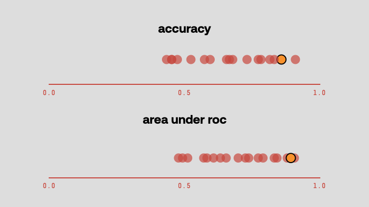 We then select the model that performs best across all of these metrics. The model we select may not be the best-performing on any specific metric, but it should be the best when weighing all the metrics together.